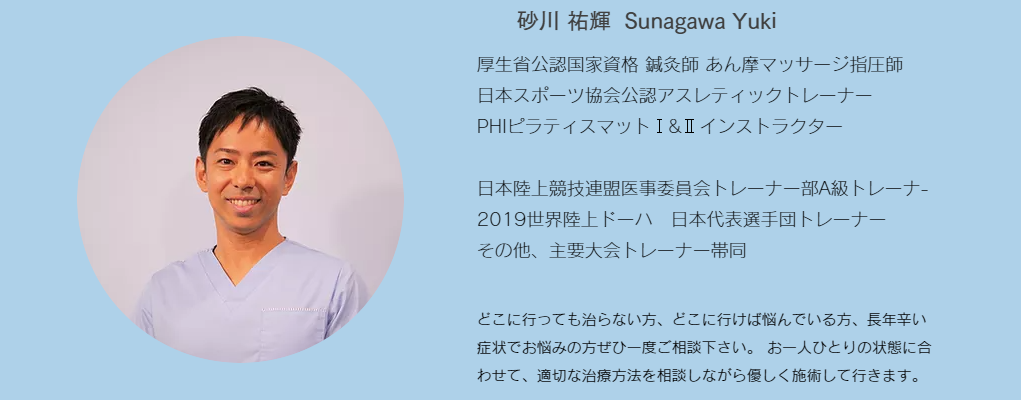 代表の砂川祐輝さんは、トップアスリートのトレーナーとしても活躍中。