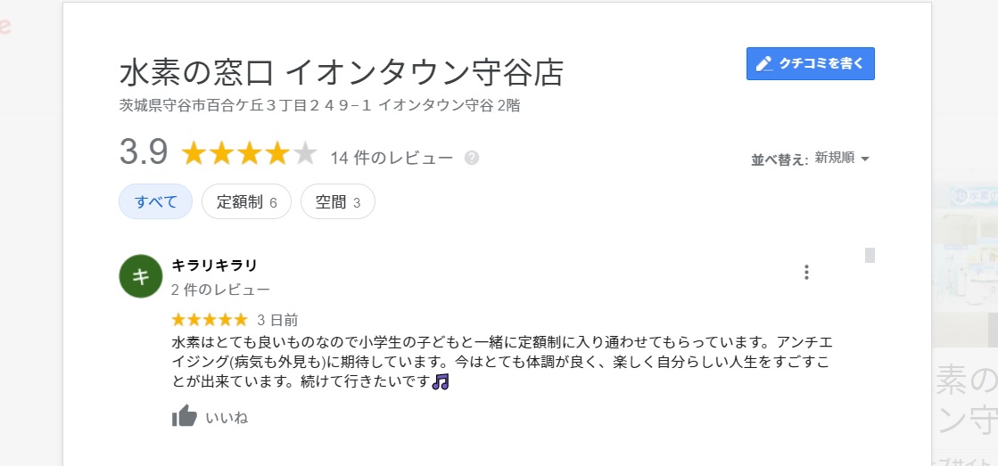 水素の窓口イオンタウン守谷店の口コミはコチラをクリック